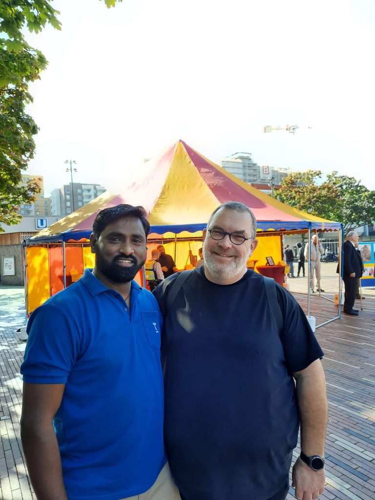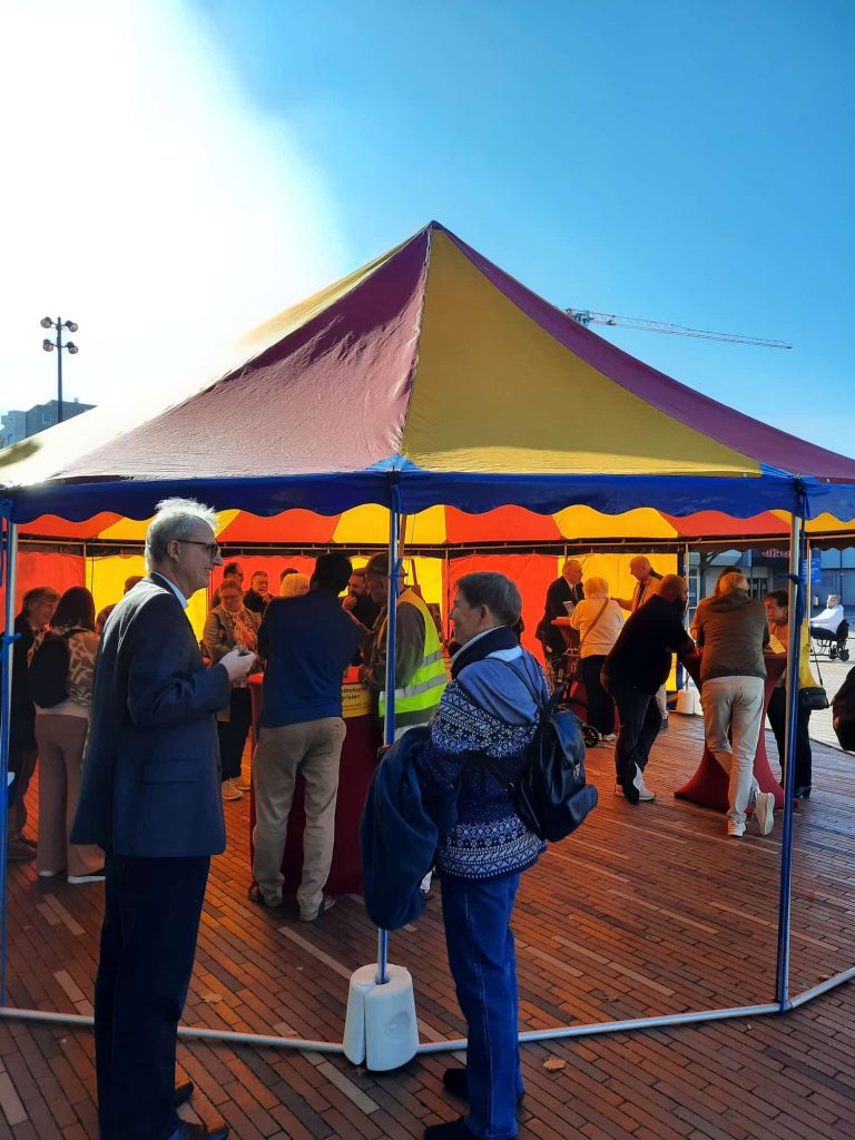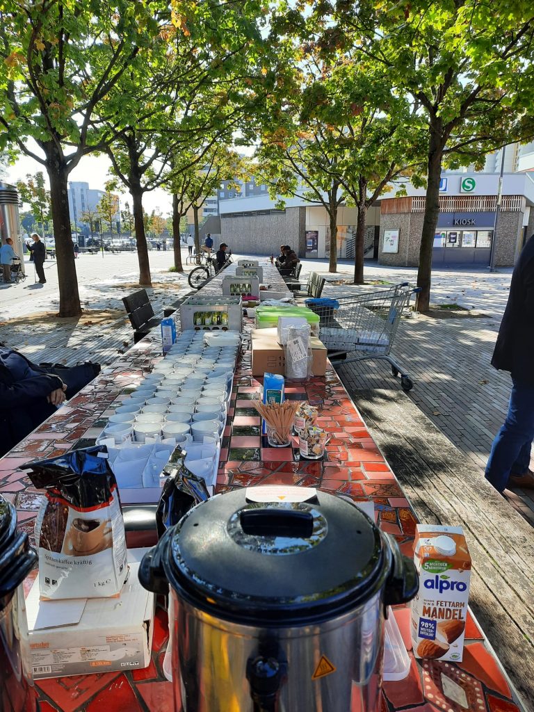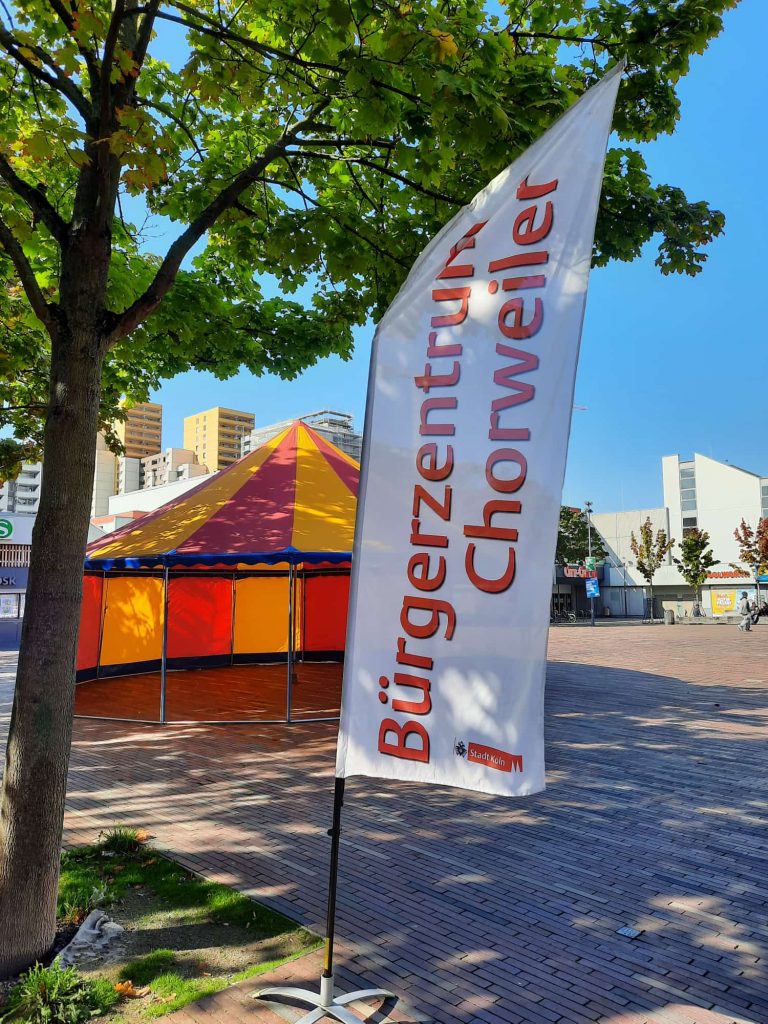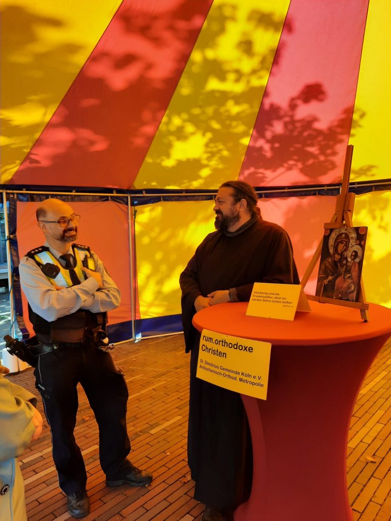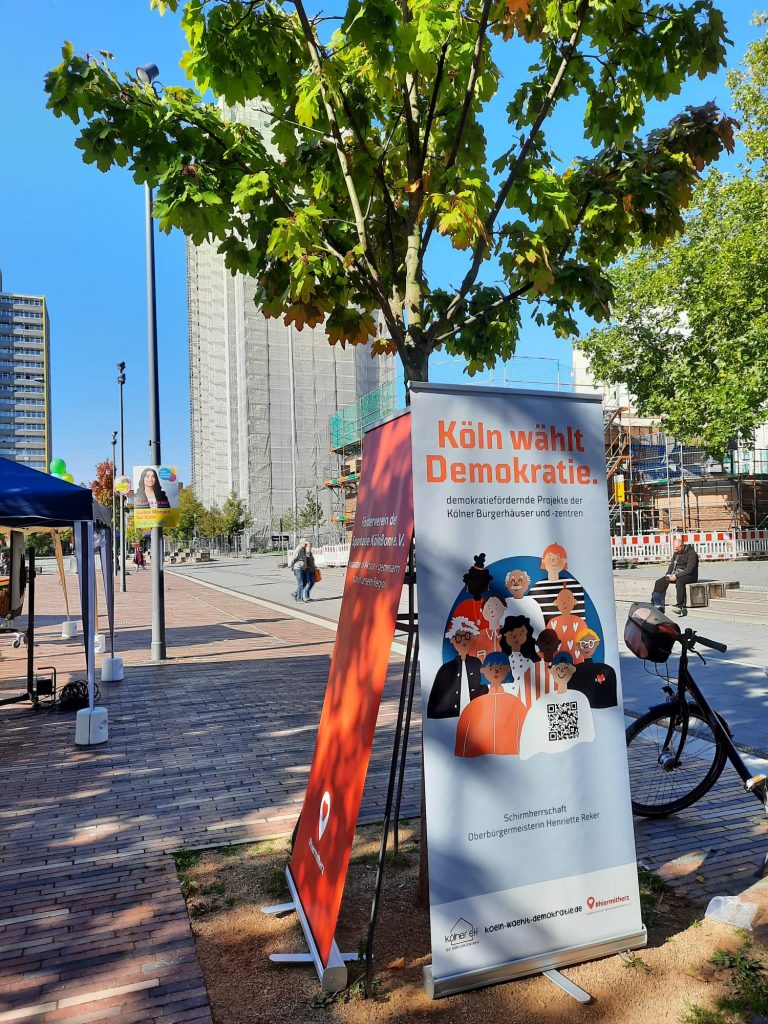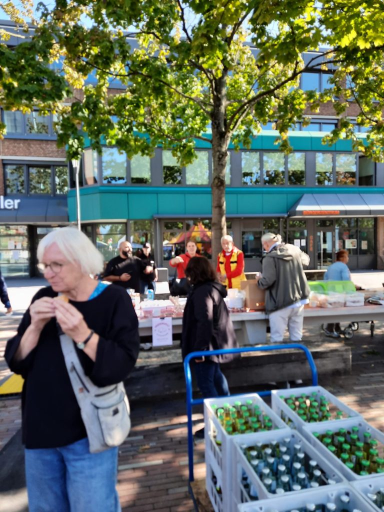 Der Runde Tisch Frieden Chorweiler feierte am 28.September auf dem Pariser Platz ein Friedensfest. Im Zeichen der Demokratie und des friedlichen Miteinanders standen Vertreter*innen der Glaubens- und Religionsgemeinschaften im bunten Zelt auf dem Pariser Platz zusammen. Sie beantworteten Fragen, kamen in den Austausch über ihren Glauben. Der herrliche blaue Himmel und der Sonnenschein luden viele Menschen zum gemeinsamen Essen und Trinken am Tisch der Nationen ein. Bunt gedeckt mit den köstlichsten Leckereien aus aller Welt und Kaffee und Kuchen ergaben sich gute Begegnungen und Gespräche.